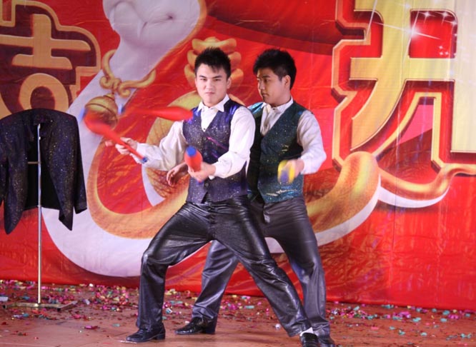 晚宴開始,主持人登臺亮相,介紹了本次宴會的重要嘉賓以及晚會的流程,隨后保賜利總經理連運增先生登臺獻祝酒詞。古樂飛揚中,由保賜利內部員工準備的精彩節目悉數登場:有營銷部全體員工準備的節目串燒《連連發》、公司美麗的姑娘、帥氣的小伙帶來的《印度天使》,還有滑稽的小品《賣紅薯》以及別出心裁的反串歌曲《雨花石》等精彩紛呈的節目,引來陣陣掌聲。節目過程中間穿插了新穎別致的游戲,可以看出這是保賜利所有員工用心投入,精心打造,呈現給大家的一場盛大娛樂盛宴。