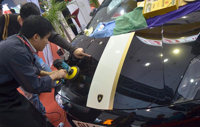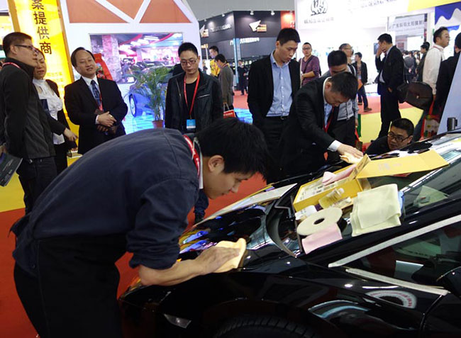 保賜利此次展臺不僅吸引了眾多專業觀眾,也為眾多客戶現場施工保賜利漆面鍍膜產品—— “保賜利碳晶鍍膜”,演示效果立竿見影,人氣瞬間推至高潮。展會現場,保賜利也悉心為廣大經銷商和專業觀眾安排了一場嘗鮮會,將即將在3月登陸央視的保賜利產品廣告片率先讓參觀觀眾觀覽,并獲一致好評。