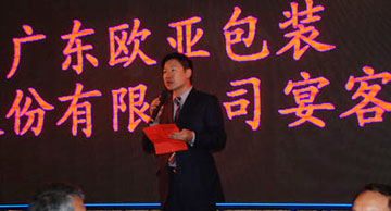 2011年11月15日,廣東歐亞集團借第五屆氣霧劑與金屬容器行業巔峰展會之際,在位于中山火炬開發區國際會展中心旁的一品御廚大酒樓盛情款待了全球氣霧劑行業領導、專家、精英、客商們,在這人聲鼎沸的晚宴上,歐亞集團董事長連云增先生首先致以了對到場朋友們熱情的歡迎,并衷心感謝了各位行業人士對氣霧劑協會所作出的貢獻及對歐亞集團多年的支持,隨后,氣霧劑協會領導也對行業人士到訪給予了熱烈的歡迎,對歐亞集團盛情款待全球來客及為氣霧劑行業做出的突出貢獻表示了感謝。