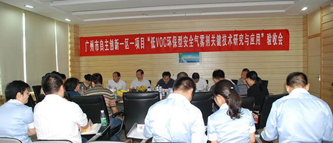 2011年9月20日,廣州市自主創(chuàng)新一區(qū)一項(xiàng)目“低voc環(huán)保型安全氣霧劑關(guān)鍵技術(shù)研究與應(yīng)用”驗(yàn)收?qǐng)?bào)告會(huì)于我司召開。廣州市科信局趙曉曦處長(zhǎng),從化市科信局盧紹輝局長(zhǎng)等一行領(lǐng)導(dǎo)蒞臨我司指導(dǎo),此外,此項(xiàng)目驗(yàn)收?qǐng)?bào)告會(huì)聘請(qǐng)了由中科院廣州化學(xué)院研究員廖兵(所長(zhǎng),并擔(dān)任該組長(zhǎng))等組成的專家組。