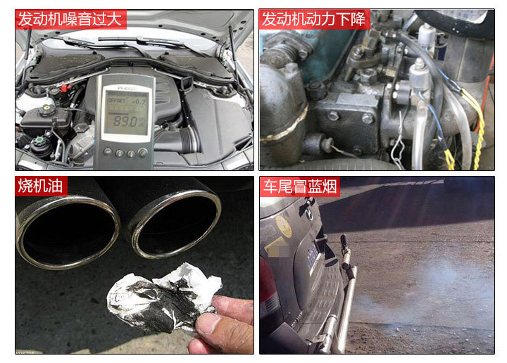 (1)  汽缸密封性下降,嚴重即會導致燒機油,冒藍煙。