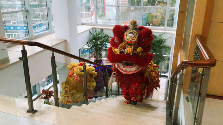 舞獅表演迎新年,預(yù)祝公司新年一帆風(fēng)順!