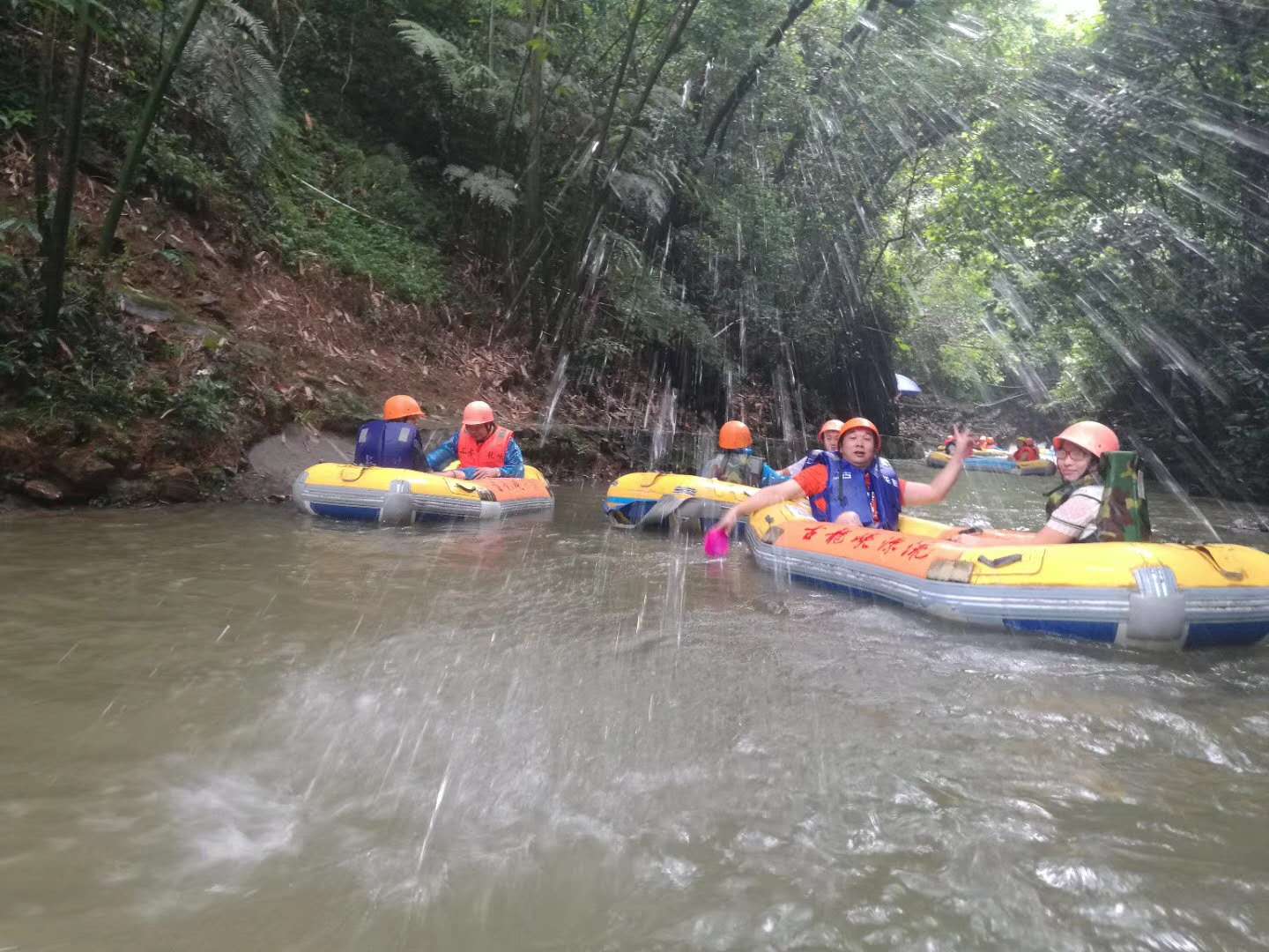 除了大自然的景色之外,在漂流過程中也能欣賞到另外一道風(fēng)景,男生們會(huì)針對女生群體進(jìn)行潑水攻擊,各種“鍋碗瓢盆”“水槍”上陣。