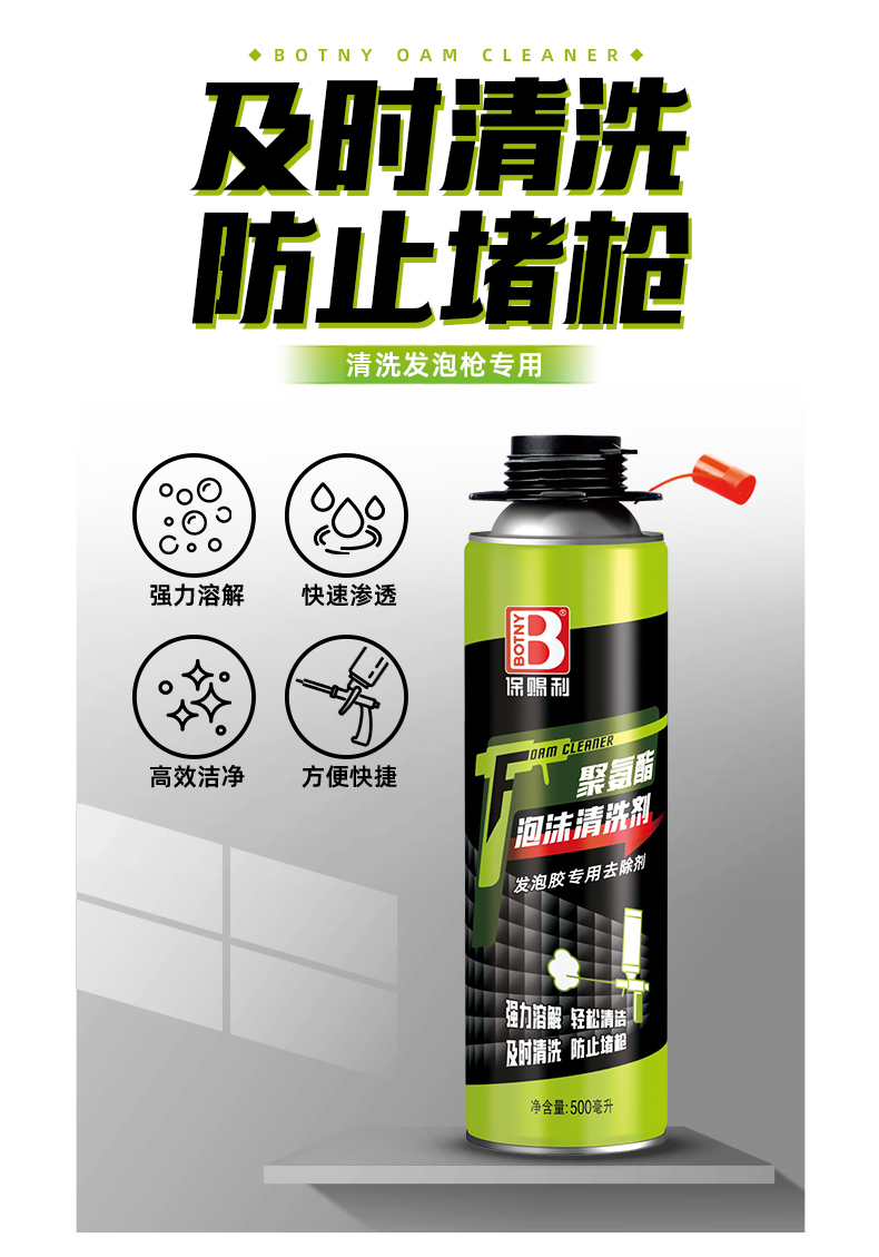 新品推薦 | 保賜利聚氨酯泡沫清洗劑,高效清除發(fā)泡膠槍殘膠,暢通管道,防止堵塞。