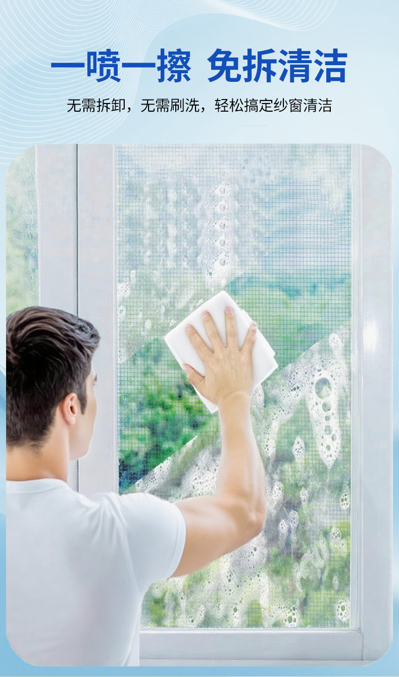 20年家政阿姨用了都說好!保賜利紗窗泡沫清洗劑,免拆免水洗,污垢自動掉下來!