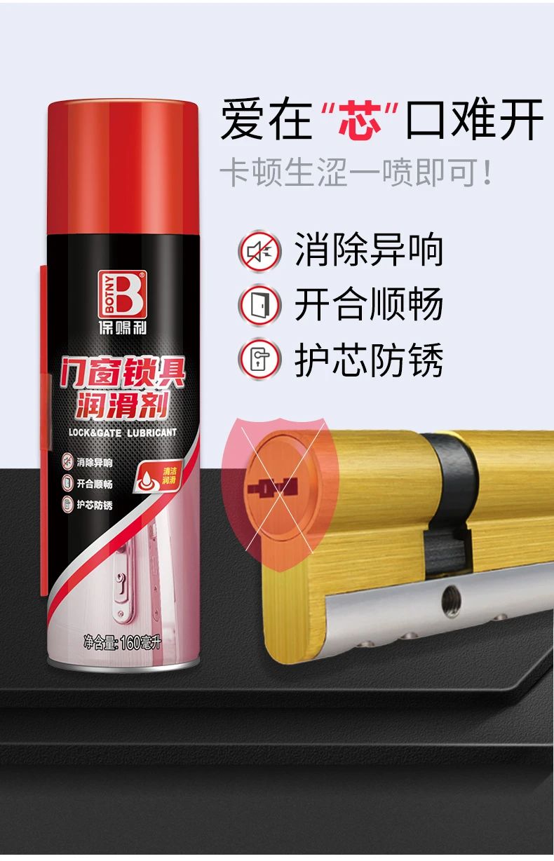 保賜利門(mén)窗鎖具潤(rùn)滑劑,深度潤(rùn)滑鎖芯、門(mén)窗軌道,消除異響,舒心生活每一天。