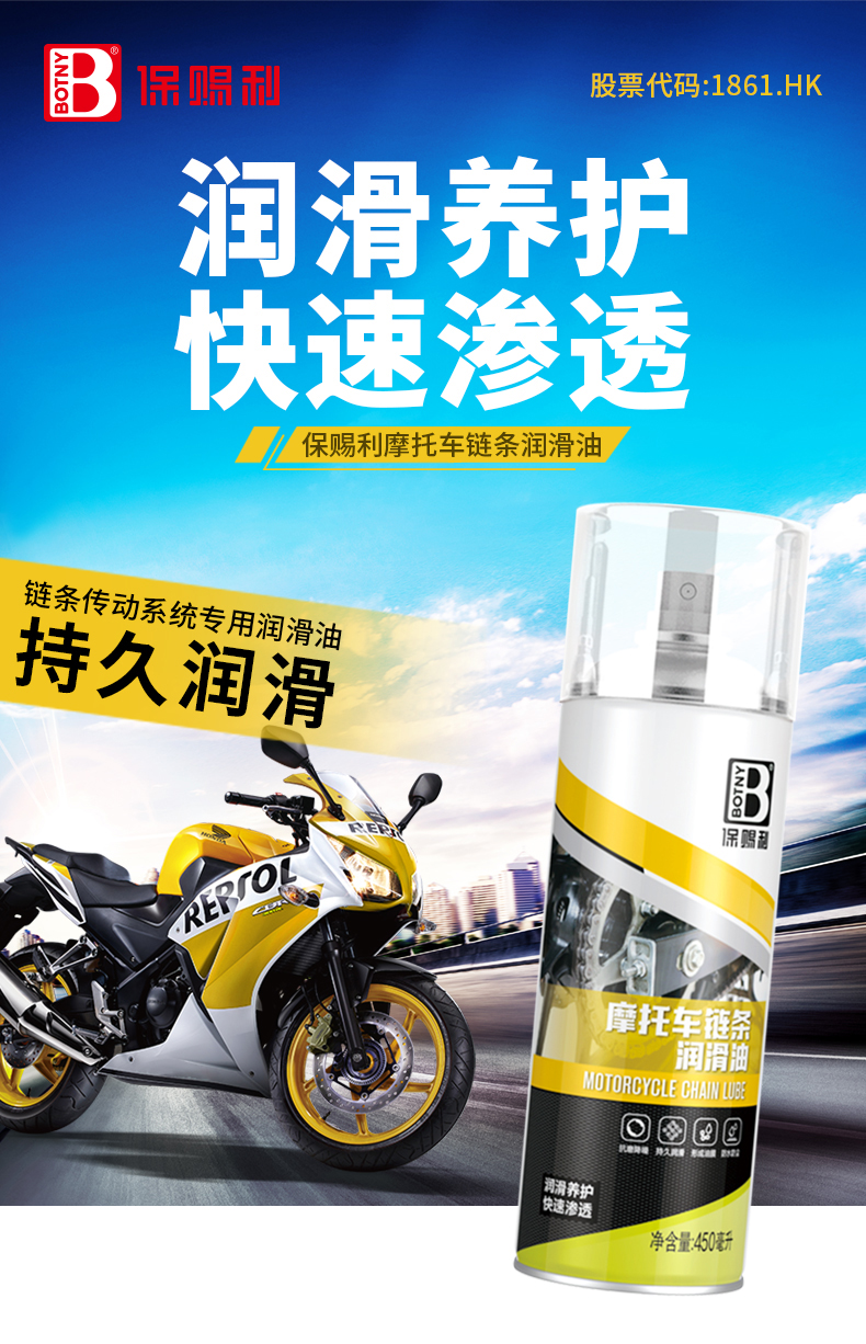 保賜利摩托車鏈條潤滑油,持久潤滑、抗磨降噪、防水防塵,讓你更踏實地享受摩旅!